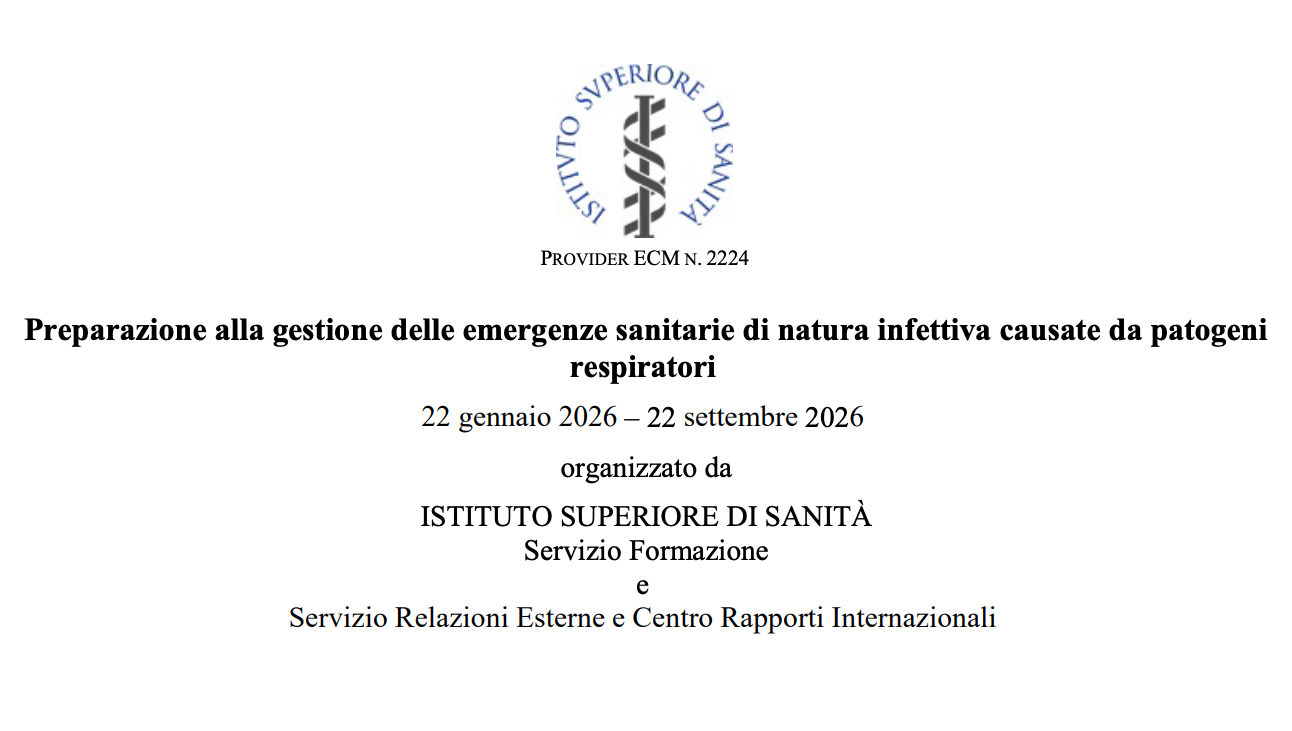 L'Istituto Superiore di Sanità (ISS) ha lanciato un nuovo importante percorso formativo da 20,8 crediti ECM dal titolo "Preparazione alla gestione delle emergenze sanitarie di natura infettiva causate da patogeni respiratori" e sarà attivo fino al 22 settembre 2026.