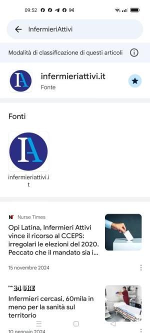 Quindi cliccando InfermieriAttivi come fonte vedi la pagina che Google News dedica a InfemrieriAttivi, come nella foto sotto: