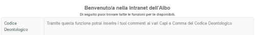Si accede e c'è un elenco di cose che si possono fare, la prima è la consultazione del codice deontologico.