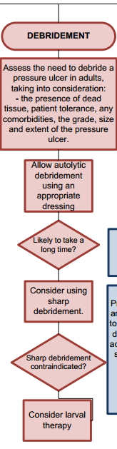 La linea guida del NICE (National Institute for Health and Care Excellence) mette in evidenza la terapia larvale per il debridement.
