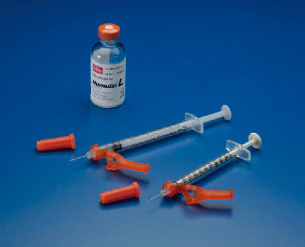 - Siringhe che richiedono un'azione diretta dopo l'iniezione, presentano un sistema di protezione esterno che deve essere attivato dall'operatore spostando un cappuccio sopra l'ago. Si toglie il cappuccio si esegue l'iniezione e con un dito si neutralizza l'ago; l'ingombro del dispositivo di protezione è ininfluente cambia solo che la siringa non è più simmetrica ed acquisisce un verso e una posizione di utilizzo obbligata, dopo poco ci si abitua.