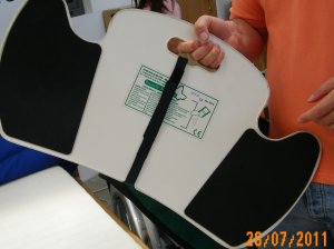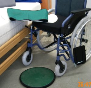 L'asse di trasferimento in foto viene utilizzata per agevolare il trasferimento dell'ammalato dal letto alla carrozzina, due superfici molto diverse, la prima liscia a bassa resistenza per favorire lo scorrimento e la seconda che fa attrito per mantenere la posizione, ma non è tutto. Gli incavi consentono di "incastrarsi meglio con la sedia a rotelle e consente un trasferimento più agevole e sicuro.