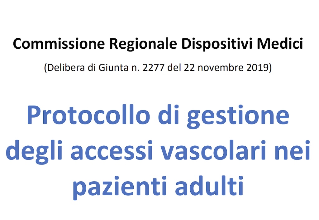 Il documento dal titolo "Protocollo di gestione degli accessi vascolari nei pazienti adulti" è un lavoro realizzato da numerosi professionisti.